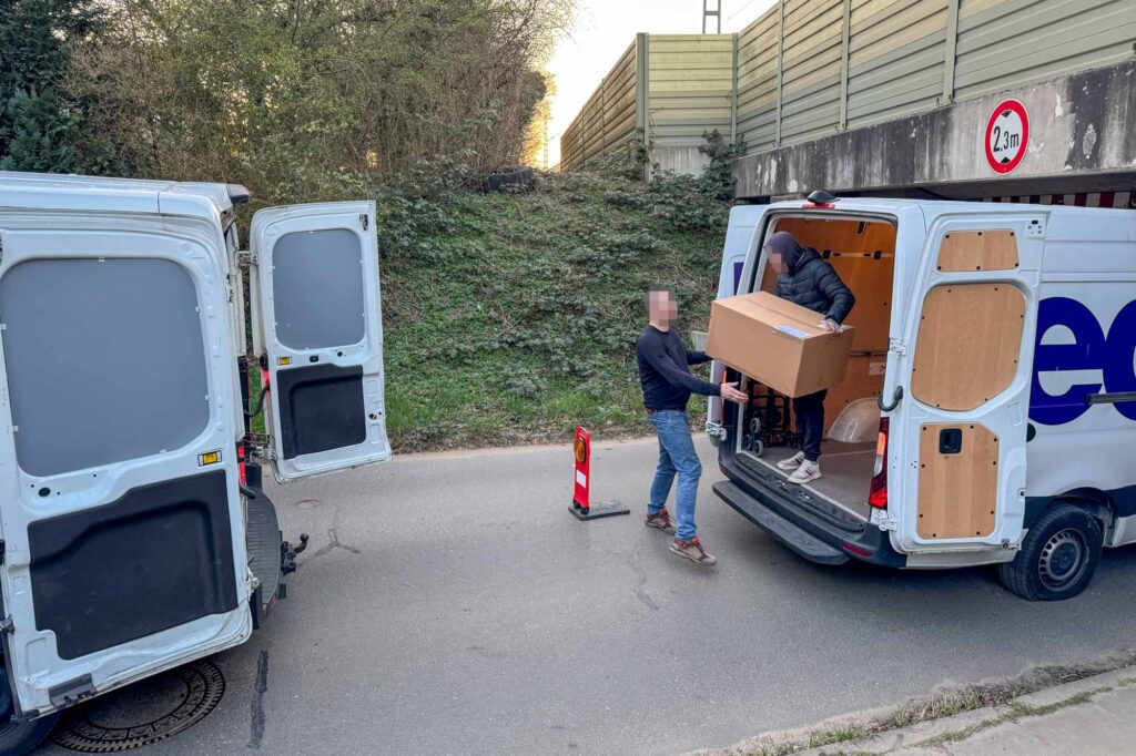 Am Abend wurden die geladenen Pakete vom feststeckenden Wagen in einen weiteren Transporter umgeladen, damit diese ihr Ziel noch so schnell wie möglich erreichen.