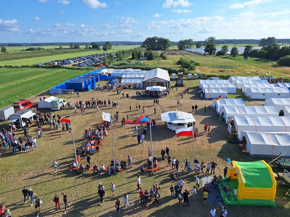 Stelle/Fliegenberg. Wenn der Duft frisch gebackener Waffeln durch die Zeltreihen zieht, die Elbe das Boot schaukelt und Disconebel zwischen Feldwegen tanzt – dann ist Zeltlager in Fliegenberg. Auf der Wiese am Ortsrand errichteten 17 Jugendfeuerwehren aus der Gemeinde Stelle, der Stadt Winsen und aus Drezdenko, der Partnerstadt von Winsen, ein Lager der besonderen Art.