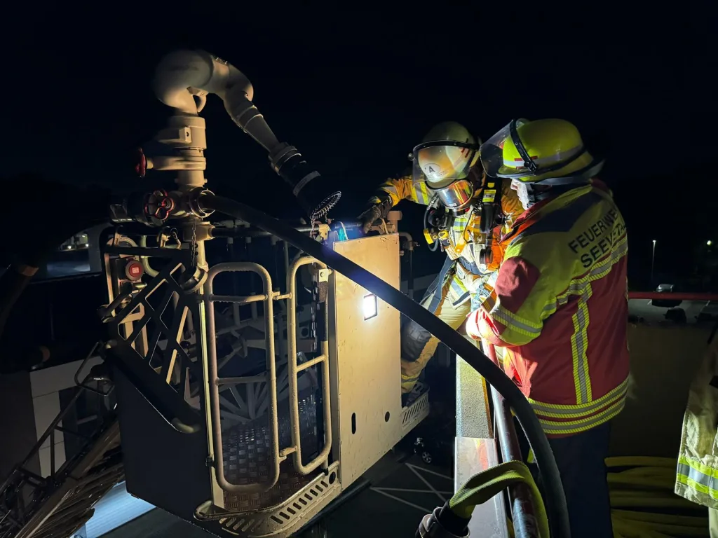 Stelle/Seevetal/Ashausen. Die Feuerwehr Ashausen hat bei einer gemeinsamen Übung mit der Feuerwehr Meckelfeld den Umgang mit der Drehleiter trainiert. Das Training fand auf dem Gelände der Feuerwehrtechnischen Zentrale (FTZ) in Hittfeld statt. Die Einsatzkräfte übten in zwei Gruppen.